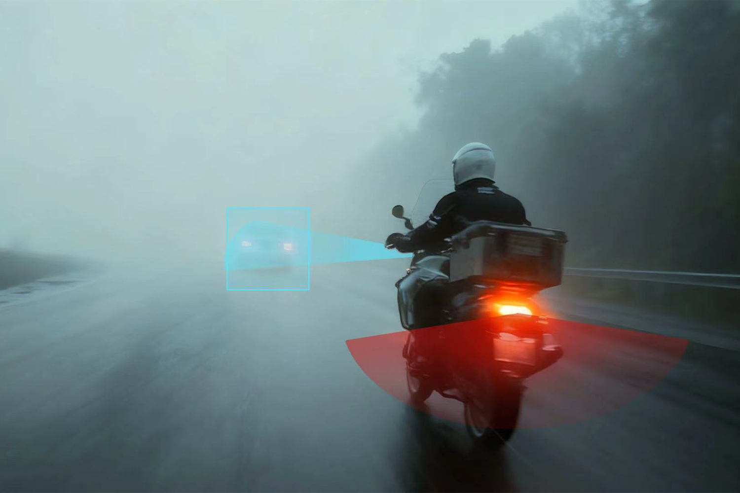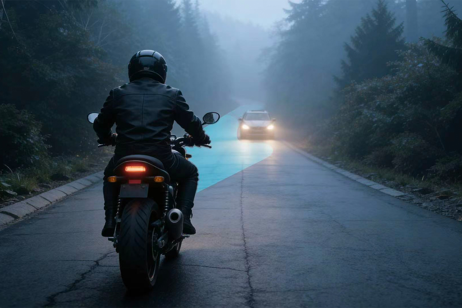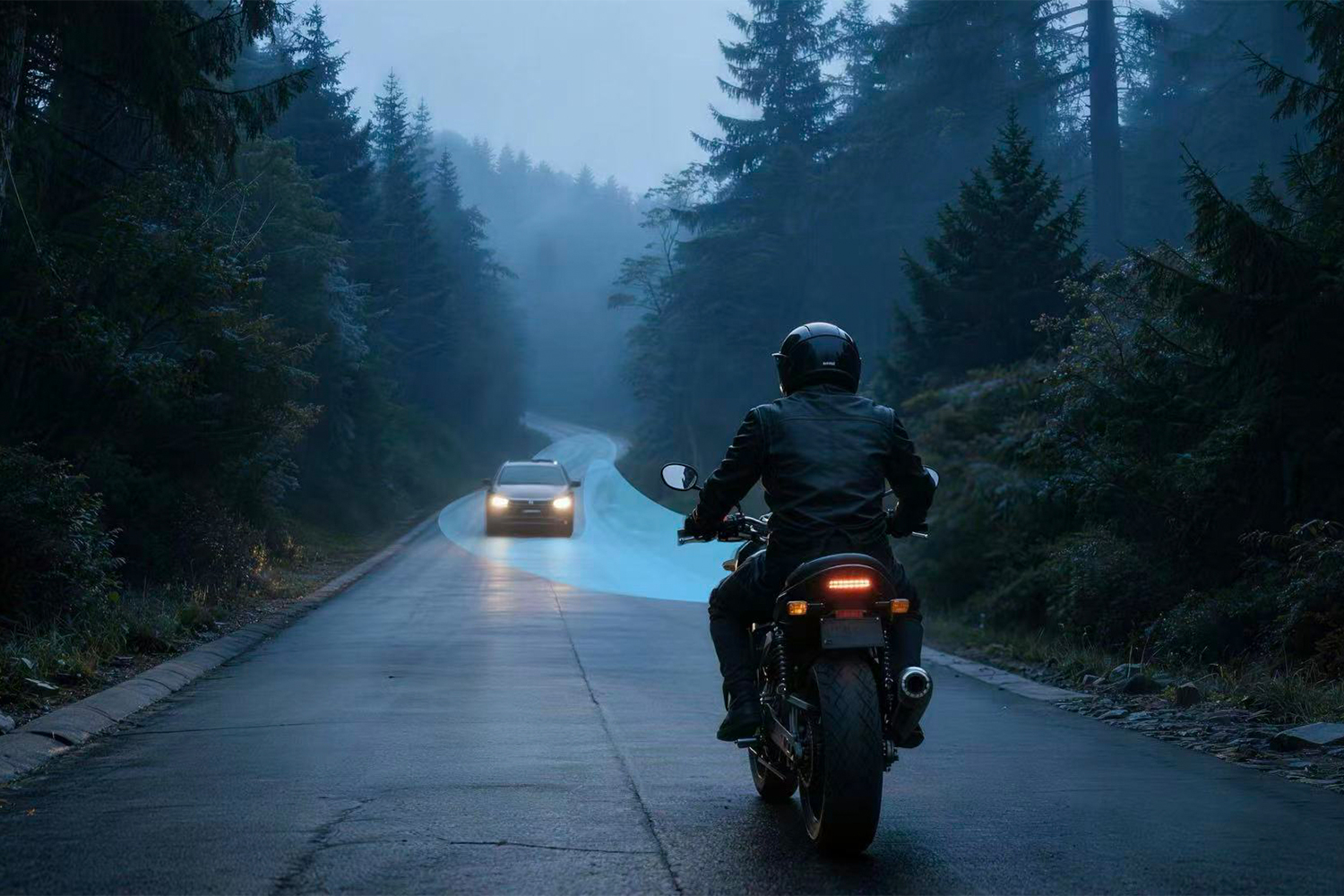该功能深度适配两轮车辆的夜间骑行需求,在避免炫目的同时,最大限度保留远光照明,显著提升雾天、林间等低能见度场景下的骑行安全性。