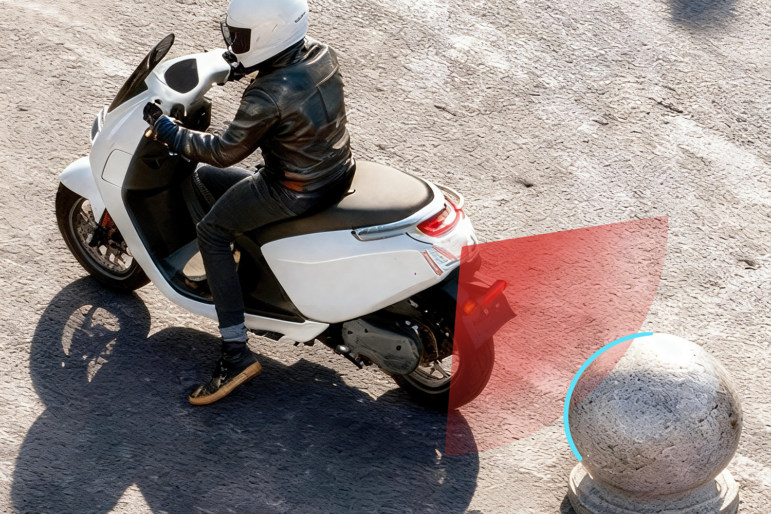 低速倒车时,后方的石球障碍物已进入危险距离,骑士却可能因视线盲区未及时察觉。此时,摩托车的PAF(Parking Alert Function)倒车辅助预警功能即刻响应:后向毫米波雷达精准捕捉到障碍物的位置与距离,系统立即触发预警 —— 仪表盘和后视镜警示灯急促闪烁、车把传来清晰震动、蜂鸣器立刻报警,提醒骑士立即制动,有效避免了低速挪行时的剐蹭风险,让每一次城市穿行都更安心、更从容。